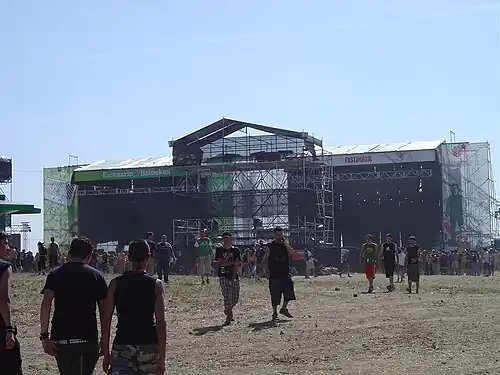 Zona de acampada, con escenarios al fondo, en la edición de 2005. En 2006, debido al cambio de formato, Festimad no contó con espacio para la misma.