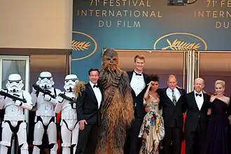 ![]() Reparto de la película Han Solo: una historia de Star Wars en la alfombra roja del Festival de Cannes de 2018 | |||||
