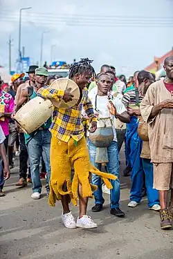 El día es simbólico de disfrute después de la temporada de cultivo, y la abundancia se comparte con amigos y simpatizantes.[4] Una variedad de festividades marcan el comer del nuevo ñame. Las danza folclórica, las mascaradas, los desfiles y las fiestas crean una experiencia que algunos participantes caracterizan como "arte"; El colorido festival es un espectáculo de alegría, agradecimiento y sentimiento comunitario.[2]