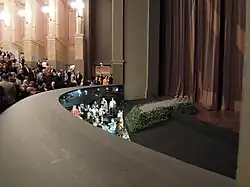 - Los primeros violines se sitúan en el lado derecho del director, y no en el lugar habitual, en el lado izquierdo. De esta forma, el sonido de los violines no se dirige directamente hacia el público, sino hacia el fondo del escenario, donde se refleja de nuevo hacia el auditorio.