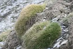 - En la Cordillera Cantábrica a Festuca eskia acompañan Luzula caespitosa, Agrostis tileni y Thymelaea dendrobryum etc.[11]