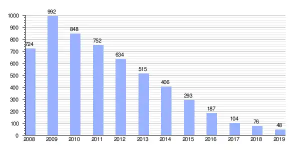 Gráfica de evolución de Deuda viva del Ayuntamiento de Fiñana entre 2008 y 2019