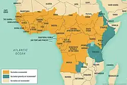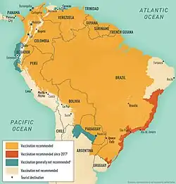 La gran mayoría de los casos de enfermos y muertos por la fiebre amarilla ocurre en el África subsahariana donde es un problema grave de salud pública que se presenta con un patrón epidémico. 610 millones de personas distribuidas en 32 países de África están en riesgo de contraerla. La enfermedad es endémica en varios países de América Central, América del Sur y el Caribe. Bolivia, Brasil, Colombia, Ecuador, Perú y Venezuela son los países con mayor riesgo.[34]