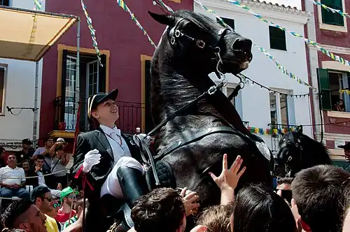 La fiesta ofrece además una buena ocasión para admirar la belleza de la doma y de los caballos de la isla. Muchos de ellos son precisamente negros caballos de auténtica raza menorquina; no en vano Menorca cuenta con el mayor número de caballos por kilómetro cuadrado de Europa. El caballo no sólo es el protagonista de la fiesta, sino el emblema de la isla. Los menorquines se sienten orgullosos de poseer una raza de caballo magnífica, de que se mantenga sana con un número grande de ejemplares y de conservar una vieja tradición de doma. Al fin y al cabo toda la isla está rodeada por una ruta ecuestre perimétrica de 185 kilómetros, el Camí de Cavalls, que sirvió como ruta de comunicación rápida para la defensa costera y hoy constituye un estupendo sendero para conocer los sitios más bellos y recónditos de la islita.