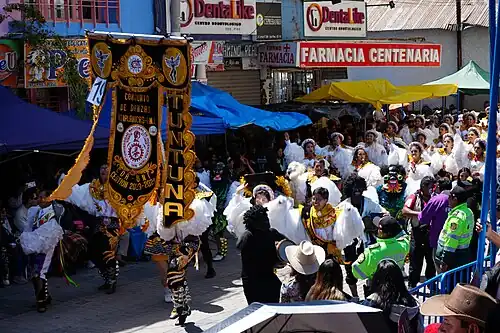 La Festividad de la Virgen de la Candelaria de Puno es una manifestación cultural y religiosa de Perú que combina tradiciones quechua, aimara y mestiza en honor a la Virgen de la Candelaria, patrona de Puno.[1] Fue declarada Patrimonio Cultural Inmaterial de la Humanidad por la Unesco el 27 de noviembre de 2014.[2]Es la mayor celebración cultural, musical, dancística y religiosa de su tipo en el país. Se lleva a cabo cada febrero e incluye diversas etapas: ensayos, novenas, albas de fiesta, entrada de cirios, entrada de k'apos, vísperas, celebración de 2 de febrero, octava, veneración y cacharpari.
