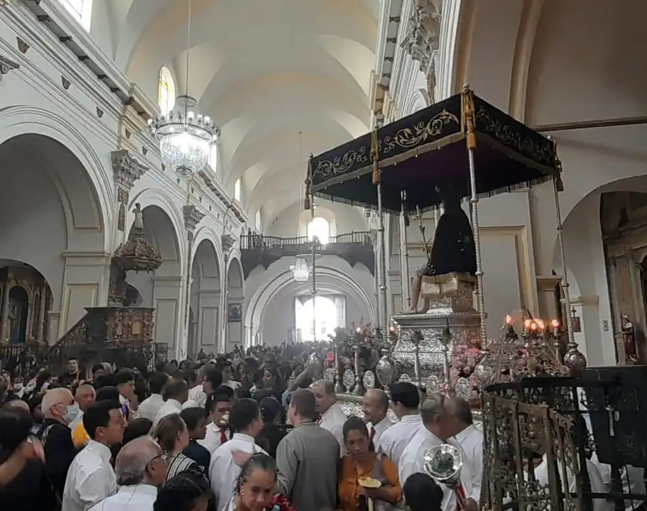 ![]() Multitudes en la Iglesia de San Francisco durante la Procesión de Bajada | ||