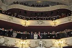 Por la tarde del día 18, las autoridades se trasladan al Teatro Municipal de Santiago, donde se efectúa una gala operática conforme a la tradición desde 1910,[78]​ cuando se representó Aida.[79]​ Esta actividad se remonta a los antiguos bailes de salón dados en el Palacio de La Moneda para celebrar el 18 de septiembre; el primero de ellos ocurrió el 30 de septiembre de 1812 y fue organizado por José Miguel Carrera:[80]