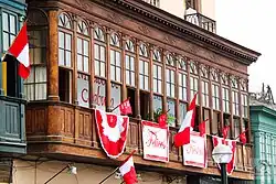 - El 28 de julio, en conmemoración a la declaratoria de Independencia en la Plaza Mayor de Lima por parte del Libertador José de San Martín[4] (el Acta de Independencia del Perú se firmó el 15 de julio de 1821).