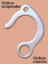 Uso de los orificios: Orificio conector con cordino al arnés. Orificio recuperador sin uso.