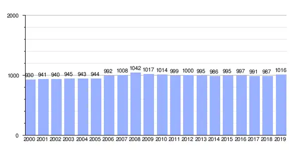 | Gráfica de evolución demográfica de Figueiras entre 2000 y 2019 |