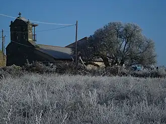 De las edificaciones existentes, destaca especialmente su iglesia y en especial su espadaña. Junto a esta última, se halla un viejo moral de forma y dimensiones especialmente caprichosas.