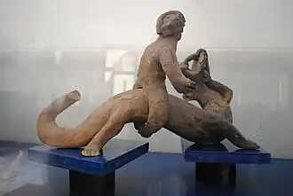 - Los grupos, que muestran animales y humanos interpretando una escena de una leyenda o un relato;