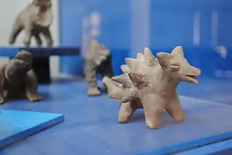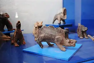 - Figurillas de mamíferos, muchas de las cuales representan animales del Pleistoceno desaparecidos, tales como el rinoceronte, el tapir, el tatú, la llama, etc.[12]