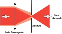 Haciendo pasar este haz central por una abertura cuyo tamaño depende de la longitud de onda de la luz, de la distancia focal de la lente y de la calidad del resonador (generalmente de unos 100 μm) se obtiene un haz gaussiano casi perfecto a costa de reducir la intensidad.