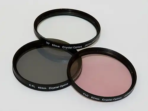 Los filtros usados en fotografía y cinematografía consisten en una lámina translúcida que se interpone delante del objetivo. Con ellos se consigue alterar la imagen de diversos modos, corrigiendo el color, modificando la luz o creando distintos efectos visuales. En ocasiones se le da el nombre de filtros a simples láminas transparentes que protegen la lente de la cámara.