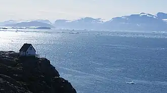 ![]() El estrecho Sarqarput, en el suroeste del fiordo, separando la península de Nuussuaq de la isla Uummannaq | ||