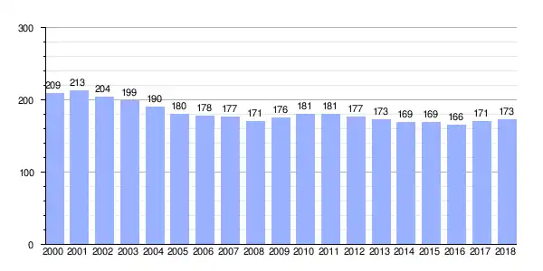 | Gráfica de evolución demográfica de Firmistáns entre 2000 y 2018 |