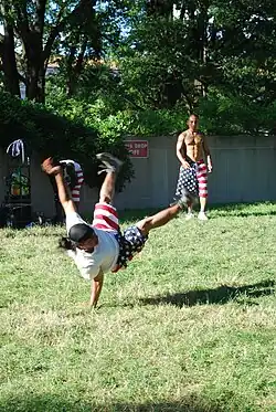 - British flare: variante iniciada desde un equilibrio invertido de brazos.