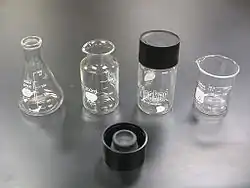 - ↑ Noticias breves: Material de vidrio de laboratorio. En: ContactoS, revista de educación en Ciencias e Ingeniería. Númº 66, pág. 71–72 (2007). Alma E. Martínez Licona. Depto. de Ingeniería Eléctrica. Universidad Autónoma Metropolitana. Unidad Iztapalapa. México.