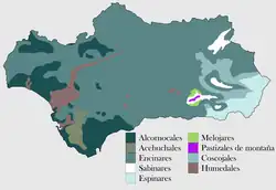 Andalucía, biogeográficamente hablando, forma parte del Reino Holártico, concretamente de la región mediterránea, subregión mediterránea occidental, y está formada por cinco sectores fitogeográficos: