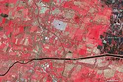 - ↑ a b Sidoarjo mud flow from NASA's Earth Observatory, posted December 10, 2008. This article incorporates public domain text and images from this NASA webpage.