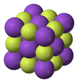Fluoruro de potasio es el compuesto químico con la fórmula KF. Después del ácido fluorhídrico, KF es la fuente más grande del ion de flúor para aplicaciones de manufactura y en química. Es un compuesto iónico y ocurre naturalmente en el mineral raro carbobita. Soluciones acuosas de fluoruro de potasio atacaran el vidrio, debido a la formación de fluorosilicatos, aunque el ácido fluorhídrico es más efectivo.