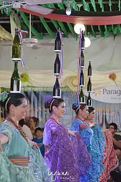 La danza paraguaya es producto del conjunto de expresiones artísticas de orígenes criollos y guaraníes que fueron adoptados en la cultura escenográfica paraguaya para expresar el acervo cultural a través de ritmos musicales autóctonos como la polka paraguaya. Las danzas tradicionales poseen música y coreografías propias, son patrimonio cultural del pueblo. Tiene una interesante variedad de danzas tradicionales cuyas raíces son el producto de la mezcla de dos culturas: la europea y la guaraní, que sucedió primero mediante el sincretismo español-guaraní, y después con la introducción de nuevos estilos traídos por Madame Lynch y otros inmigrantes durante mediados del siglo XIX y principios del siglo XX.
