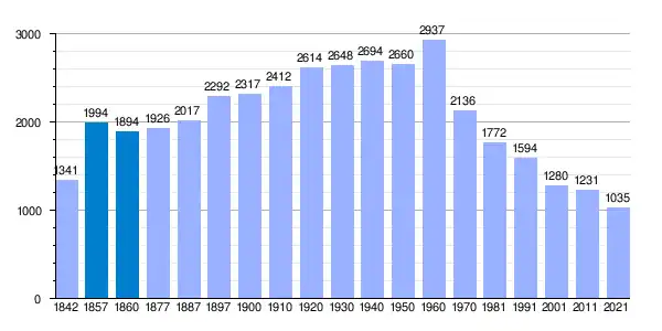 | Gráfica de evolución demográfica de Folgoso de la Ribera[20] entre 1842 y 2021 |