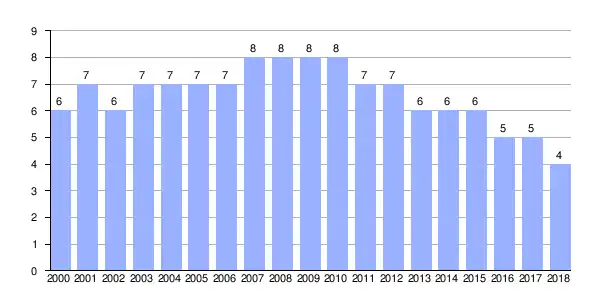| Gráfica de evolución demográfica de Follenza entre 2000 y 2018 |