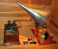 No fue hasta 1877, cuando se creó el fonógrafo, que fue el primer aparato capaz de reproducir sonido.[3] Cuando Thomas Alva Edison anunció la invención de su primer fonógrafo, la primera pieza interpretada fue "Mary had a little lamb" ("María tenía un corderito") el 21 de noviembre de 1877. Edison mostró el dispositivo por primera vez el 29 de noviembre de ese mismo año y lo patentó el 19 de febrero de 1878.[6]