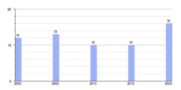 Gráfica de evolución demográfica de Fondodevila entre 2000 y 2023