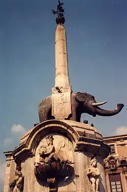 La Fontana dell'Elefante fue realizada por Vaccarini en el ámbito de la reconstrucción de la ciudad tras el terremoto del 11 de enero de 1693. Se ha afirmado que el arquitecto palermitano se inspiró en el Obelisco de la Piazza della Minerva de Gian Lorenzo Bernini, pero en realidad la iconografía del elefante coronado por un obelisco con una esfera en la cima está documentada en la Hypnerotomachia Poliphili (Venecia, 1499) atribuida a Francesco Colonna.[1]