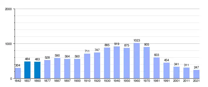 | Gráfica de evolución demográfica de Fontanarejo[5] entre 1842 y 2021 |