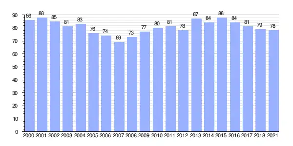 | Gráfica de evolución demográfica de Fonte de Mouro entre 2000 y 2021 |
