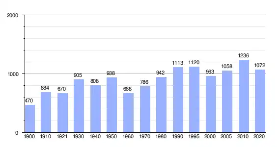 En 2020 registró una población de 1072 personas, lo que corresponde al 5.11 % de la población municipal.[1][7] De los cuales 445 son hombres y 526 son mujeres.[1][7]