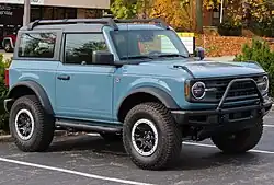 Después de una pausa de 25 años, el Bronco de sexta generación ahora se ofrece como un SUV mediano de dos puertas por primera vez. También se ofrece como un SUV grande de cuatro puertas con una distancia entre ejes de 16 pulgadas (41 cm) más larga. Compite directamente con el Jeep Wrangler como convertible de dos y cuatro puertas (techo rígido).