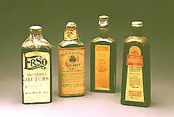 - Tinturas: Son preparaciones líquidas, coloreadas (de donde su nombre), resultado de la mezcla de hidroalcoholes con drogas secas a temperatura ambiente. Sus propiedades dependen del fármaco añadido, aunque en líneas generales son antisépticas y antipruriginosas. Lo más habitual suele ser el uso de soluciones de etanol, éter o cloroformo con productos como el mentol, fenol, fucsina, eosina, violeta de genciana o breas. Si resecan demasiado se puede añadir aceite de ricino al 1%. Se suelen administrar una vez al día y se retiran los restos al día siguiente antes de la nueva aplicación.