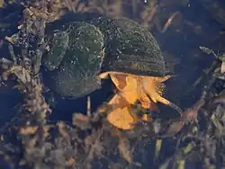 Un miembro de agua dulce (lacustre) de Tateidae (caracol). |