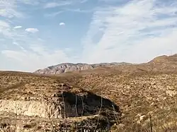 ![]() La Sierra de Santo Domingo, montañas de piedra caliza de la Formación Finlay en el municipio de Aquiles Serdán, cerca de la ciudad de Chihuahua. | ||