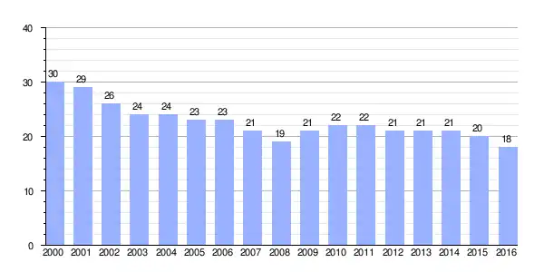 | Gráfica de evolución demográfica de Formigones[2] entre 2000 y 2016 |