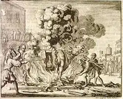 Durante la primera persecución de los cristianos en Asia Menor bajo el emperador Domiciano,[nota 1] el buey, que todavía estaba en Pérgamo, fue utilizado para ejecutar al santo Antipas.[2] Según la Patrología Latina, en el reinado de Juliano el Apóstata[nota 2] muchos cristianos fueron quemados dentro del buey, en ese momento ya trasladado a Constantinopla. En 562 se incendió el foro, entonces rodeado de almacenes y talleres. El cuerpo del usurpador Focas[nota 3] también fue quemado después de su deposición.[3] Según algunas fuentes, el emperador Heraclio[nota 4] fundió la estatua para acuñar monedas de oro para pagar a su ejército en la guerra contra los persas. Sin embargo, esto no es cierto ya que las ejecuciones en la plaza continuaron estando atestiguadas durante el reinado de Heraclio, por ejemplo cuando Justiniano II[nota 5] quemó a dos patricios, Teodoro y Estefanía, ambos involucrados en un complot fallido en su contra. El mismo emperador amplió y adornó la plaza.[4] Durante la iconoclasia bizantina, santa Teodosia (fallecida en 729) y san Andrés de Creta (fallecido en 766), ambos defensores del culto a los iconos, fueron ejecutados en la plaza.[5] La primera se realizó con un cuerno de carnero clavado en su cuello.[6]