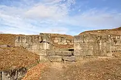 El segundo recinto, representa en realidad una prolongación del primero a un nivel inferior, siendo su forma un polígono irregular. El lado N de la segunda ciudadela está doblado por otro muro hecho de piedras ordinarias, sin forma, entre los dos edificios, obteniendo una especie de habitaciones, cuya planta baja era utilizada como almacén, y la parte superior como plataforma de lucha. Los muros de esta segunda parte también contienen dos torres, una de ellas contemporánea de la primera ciudadela. En el interior de ambas torres se descubrieron varios grandes recipientes de almacenamiento.[2]