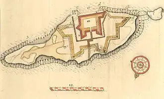- ↑ «Dalarö». Archipeligo. Archivado desde el original el 4 de septiembre de 2011. Consultado el 6 de enero de 2011. «La bella iglesia se construyó en 1652 y en 1656 la fortaleza Dalarö Skans estaba lista. La fortaleza se construyó para proteger a Estocolmo de los ataques navales provinientes del sur».
