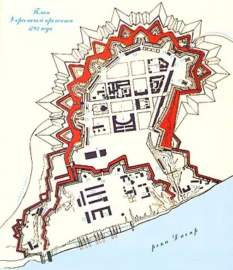 En 1788 prácticamente se completó la construcción de la fortaleza. En aquella época se convirtió en un modelo de construcción de fortificaciones de tierra. La fortaleza tenía una forma alargada en forma de estrella. Se cavó un foso alrededor y se rellenó una muralla de tierra, en cuyos baluartes se instalaron 220 cañones, y en su interior había un complejo de edificios administrativos e industriales. Ocho regimientos de infantería estaban alojados en cuarteles de piedra diseñados para 24.000 soldados. Aquí también estaban estacionados una compañía de ingenieros y un batallón de guarnición interna.[2]