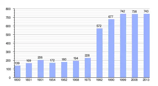 Los datos demográficos contemplados en este gráfico de la comuna de Fosseuse[4] se han cogido de 1800 a 1999 de la página francesa EHESS/Cassini, y los demás datos de la página del INSEE.[5]
