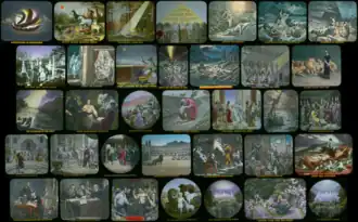 - ↑ "Society Uses Many Means to Expand Preaching", Centennial of the Watch Tower Bible and Tract Society of Pennsylvania 1884-1984, page 24, "The Photo-Drama ... is believed to have been viewed by more than 9,000,000 people throughout North America and Europe, as well as many others in places around the world.