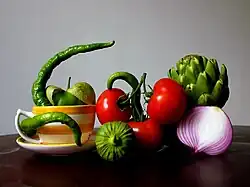 Este género le da al fotógrafo más libertad en la disposición de los elementos de diseño dentro de una composición en comparación con otros géneros fotográficos, como la fotografía de paisajes o retratos. La iluminación y el encuadre son aspectos importantes de la composición de la fotografía de naturaleza muerta.[1]