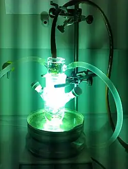 - ↑ Oelgemöller, Michael; Shvydkiv, Oksana (2011). «Avances recientes en fotoquímica de microflujos». Molecules 16 (9): 7522-7550. PMC 6264405. PMID 21894087. doi:10.3390/molecules16097522.
