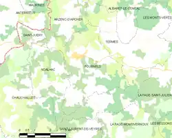 - ↑ INSEE, Datos de población para el año 2012 de Fournels (en francés).