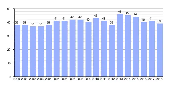 | Gráfica de evolución demográfica de Fraíz entre 2000 y 2018 |